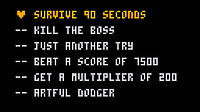 Further refined boss shooting pattern The game now ends with beating the boss and you get a bonus for the time you got left (50 points per second)...