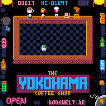 This is my entry for the Cre8 Jam. I struggled for a few days after the theme was announced, but luckily I was reading Yokohama Kaidashi Kikou at the time, and this really beautiful solar punk manga is about a robot barista in a post-apocalyptic world serving coffee to the few humans (and robots) left in the area. It seemed like a good fit, so I decided to make a Tapper-like game with robots and coffee, and added some flickering neon signs for good measure.