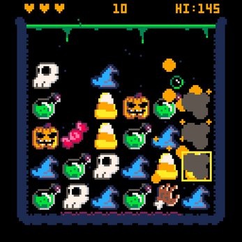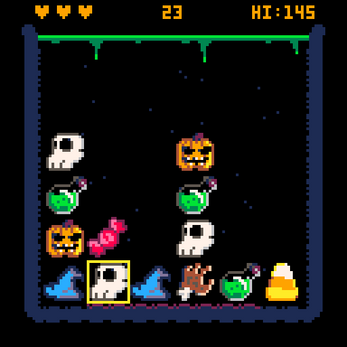 Play it right here in the browser at the top of the screen. Or download the cart and play it in your PICO-8 fantasy console. Or search for "trick or three" in Splore of your PICO-8 fantasy console.
